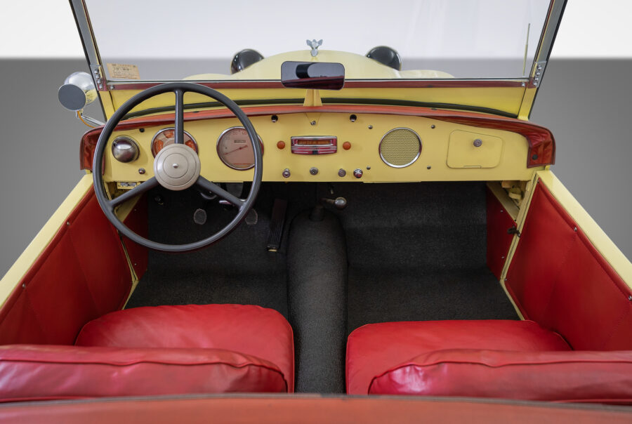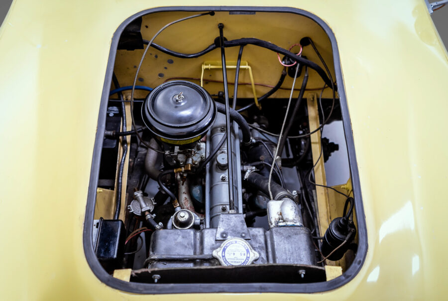 The diminutive sports car is powered by a 724cc overhead-valve inline-4-cylinder engine generating 26.5 horsepower and backed by a 3-speed manual transmission. Zero-to-60 time is rated at a brisk 20 seconds, “amazing for a car this size,” the seller notes.