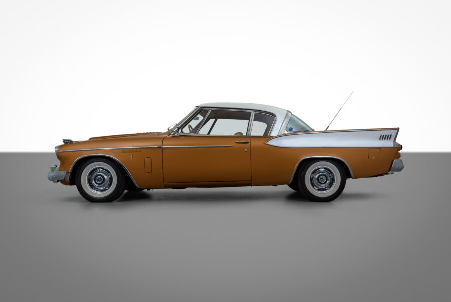 At a time when “cars with fins” were all the rage, Studebaker produced the Golden Hawk. On looks alone, this two-door hard-top was destined to iconic. The two-tone paint scheme is exquisite. A bold and distinctive front end showcased a vertical grill and chrome for weeks. The sharp-looking and fast-looking hind quarters signaled this car was more than just a pretty face. 14” whitewall tires completed the quintessential classic car look.