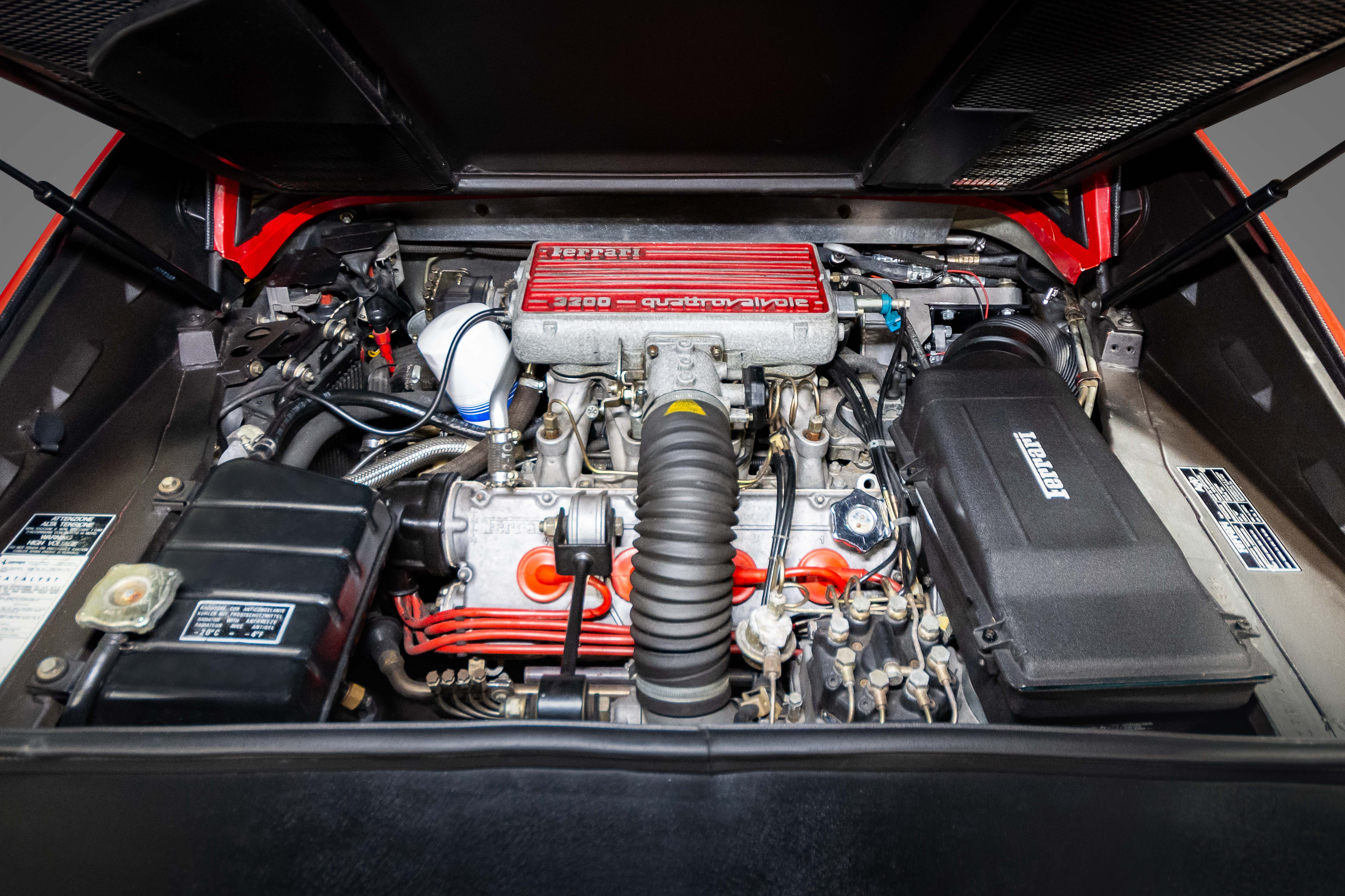 The 328 uses a 3.2-litre development of the 3.0 quattrovalvole (four valves per cylinder) V8 from the Ferrari 308.