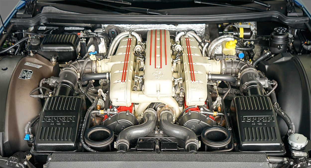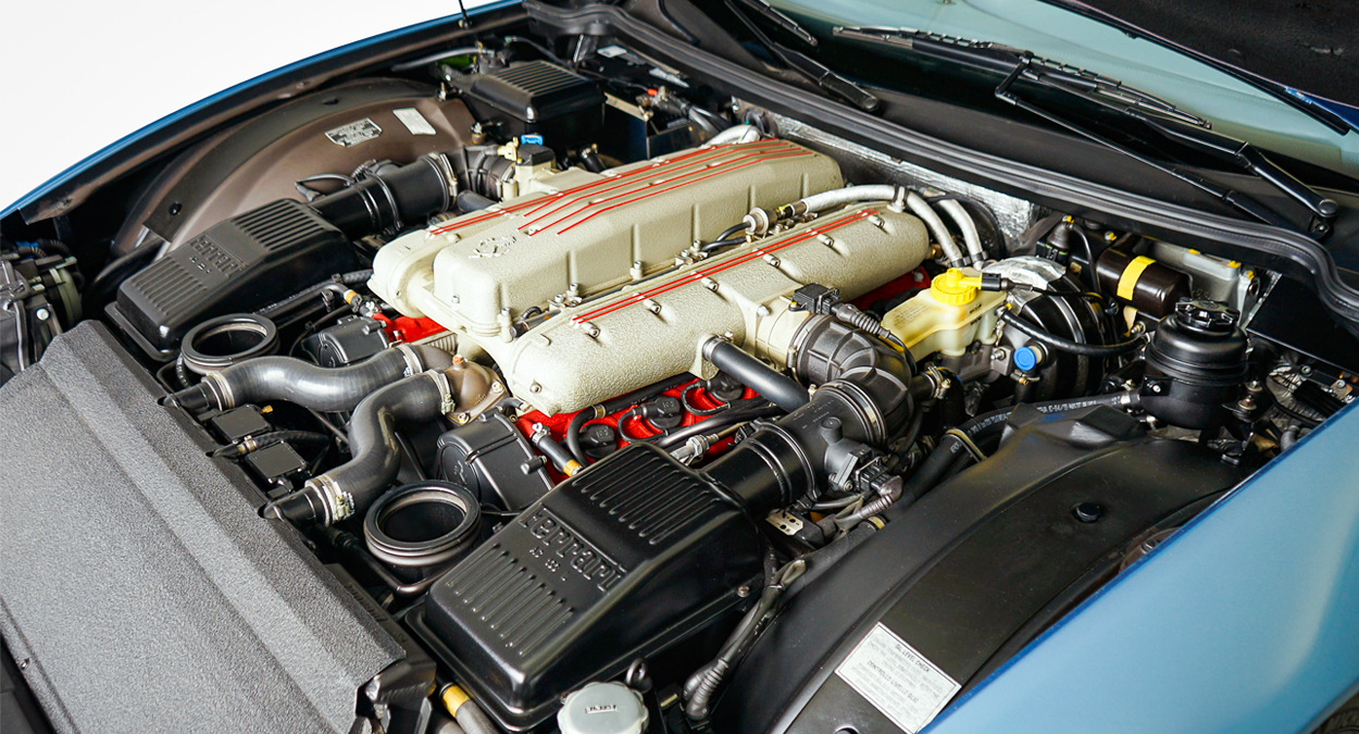 The F133 A engine is a naturally aspirated 65° V12 with four valves per cylinder, dual overhead cams and a variable length intake manifold. It displaces 5,474 cc (334.0 cu in) and produces 485 PS (357 kW; 478 hp) at 7,000 rpm and 568.1 N⋅m (419 lb⋅ft) at 5,000 rpm. Bore and stroke measure 88 mm and 75 mm.